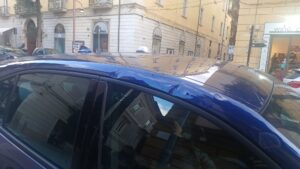 Secondo una prima ricostruzione, la struttura avrebbe ceduto all’improvviso, precipitando sulla vettura parcheggiata lungo la strada. L’impatto ha attirato l’attenzione di residenti e passanti, che hanno immediatamente dato l’allarme.