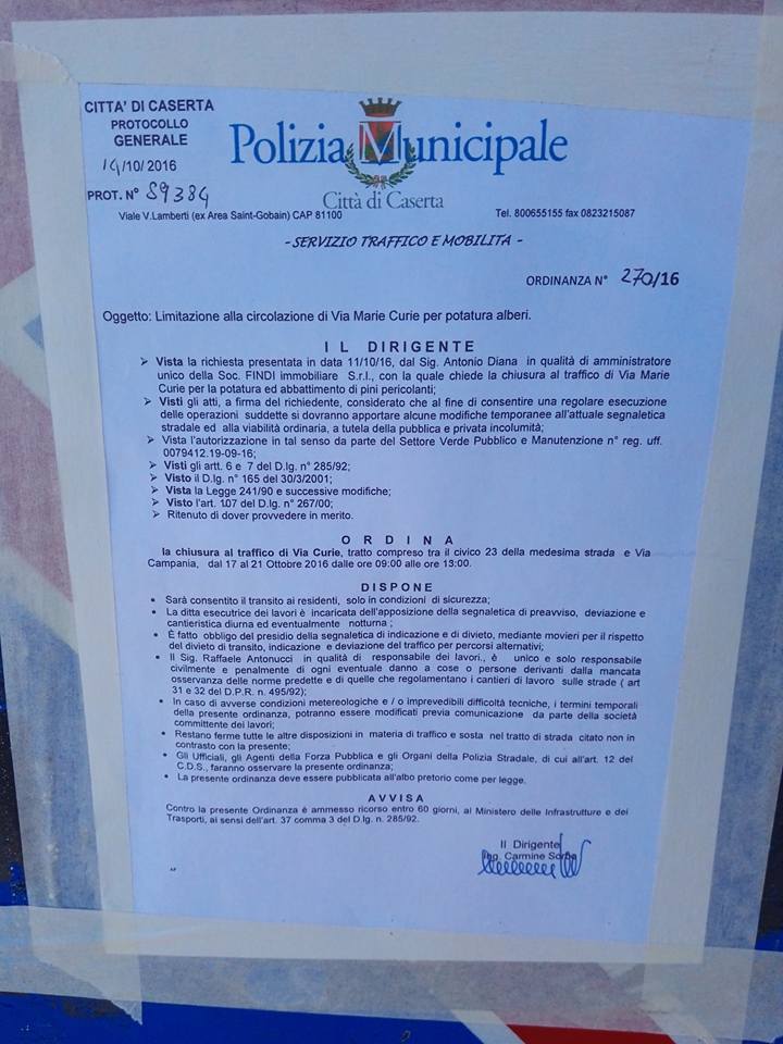 A Caserta via Curie, i cittadini sono scesi in strada chiedendo l’intervento di CASERTA Kest’è (vedi il video) contro l’ordinanza comunale della potatura ed abbattimento di alberi pericolanti.