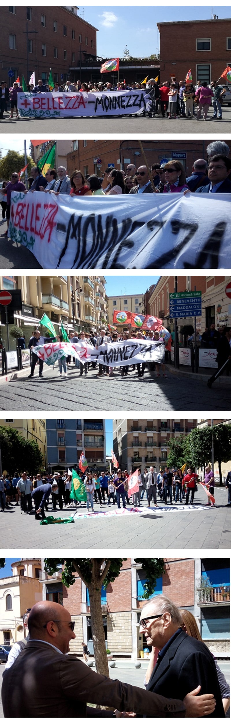 A testa del corteo i due consiglieri comunali Norma Naim e Francesco Apperti (Speranza per Caserta) il sindaco di San Nicola la Strada Vito Marotta, Edgardo Ursumando , attuale responsabile provinciale dei Verdi, Ciro Guerriero in triplice veste ,dirigente regionale ” Movimento Nazionale per la Sovranità’”e presidente di “Caserta Kest’è ’ e del direttivo della ‘Rete Genitori Scuole’, Luigi Cobianchi di ‘Caserta Libera’, Francesco Egidio del movimento “DEMA”, Mimmo Marzaioli ‘Movimento delle Agende Rosse’, poi Rosy Di Costanzo “no degrado, no movida selvaggia” Loredana de Lucia Associazione “Gli allori”, Pompeo De Chiara ass. Culturale Borbonica “Terra di Lavoro”, Carmine Iodice , Patrizia Monteforte e Luigi Evangelista in rappresentanza di ” Mò Unione Mediterranea “ e altre realtà.