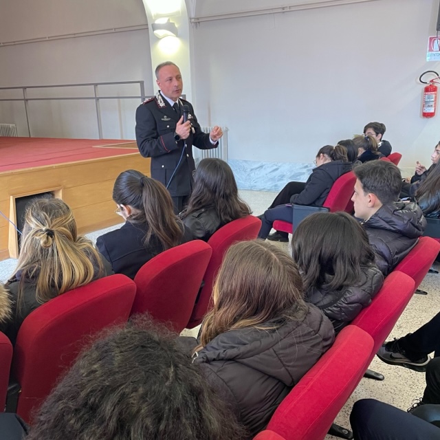 Nell’ambito del “Progetto Cultura della Legalità”, promosso dal Miur e dall’Arma dei Carabinieri con l’obiettivo di accrescere nei giovani la consapevolezza dell’importanza del rispetto delle regole, gli studenti delle classi terze, quarte e quinte delle Scuole Superiori del Villaggio dei Ragazzi (Istituti Tecnici Industriale ed Aeronautico, Liceo Linguistico, Istituto Professionale Alberghiero) hanno incontrato stamane il comandante della Compagnia dell’Arma dei Carabinieri di Maddaloni, capitano Massimo Esposito. Molti i temi affrontati nel corso del dibattito, dal bullismo al cyberbullismo, dalle devianze giovanili legate all’uso e al traffico di sostanze stupefacenti all’incidenza del fenomeno mafioso sul territorio, con un focus sui reati specifici di cui si nutre la criminalità organizzata, quali lo spaccio di droga.Gli studenti, attenti e partecipi, hanno subito avviato un vivace confronto con il dr Esposito, ricco di domande e spunti di riflessione efficacemente soddisfatti dal rappresentante dell’Arma che, nel rimarcare in modo deciso l’impegno fermo e costante delle Forze dell’Ordine nella prevenzione e repressione dei reati, si è molto soffermato sull’importanza dell’aspetto preventivo, ritenendo fondamentale, allo scopo, una maggiore collaborazione fra la Scuola e le Forze dell’Ordine per una più ampia ed efficace divulgazione della cultura della legalità. Questa la dichiarazione del dott. Felicio De Luca, Commissario Straordinario del Villaggio dei Ragazzi: “Tali eventi nascono da una stretta collaborazione tra la Fondazione e l’Arma, nata per contribuire ad educare gli studenti della Fondazione anche sui temi importanti del rispetto delle regole comuni, fondamentali per la costruzione di una società veramente civile”.