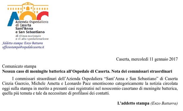 Negano l’evidenza- scrive Gianluigi Guarino direttore di CasertaCE-  ”… lo fanno perchè in Italia esistono delle categorie di intoccabili, le vere e proprie caste della verità a prescindere che, dall’alto dei loro privilegi, dall’alto del loro cursus, dall’alto delle loro protettissime carriere prefettizie, consumate tra i damaschi e le suite di grandi alberghi sul lungomare, possono permettersi anche questo; possono permettersi di scrivere 4 righe in cui mostrano la loro natura di persone completamente fuori e lontane dai reali problemi della gente comune. 100 persone dicono che ci sono stati casi di meningite? Tanti tra infermieri e medici non vengono neppure a lavorare il giorno dopo e altrettanti si tappano la bocca e il naso con le mascherine, osservati da centinaia e centinaia di persone? osservati da centinaia e centinaia di persone? E noi, gli intoccabili, quelli che parlano ex cathedra diciamo che non è così. E se ci dite che neghiamo l’evidenza a noi non ce ne frega un tubo perchè noi non abbiamo il problema di dover dar conto alla logica, agli elementi obiettivi, effettuali di una notizia, di un racconto reale. E siccome lo diciamo noi, uno più uno fa tre e non due. Tre persone rispettabili, tre pessimi commissari, absit iniuria verbi”