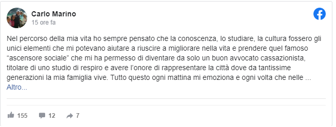 CASERTA – Il sindaco di Caserta Carlo Marino, nella serata di domenica, senza mai citarlo, ha attaccato Gianpiero Zinzi, affermando: “Un consigliere regionale candidato con la Lega in Campania, non figlio dell’ascensore sociale e mi riferiscono con un pedigree universitario di tutto rispetto, sperando di farsi un po’ di pubblicità in campagna elettorale, confonde un decreto cautelare di una sezione del Tar Campania che chiede agli uffici competenti della Regione campania che visto che il piano di dimensionamento scolastico e’ ante emergenza Covid 19 se quel piano è ancora attuabile e quindi rideterminarlo, con un’ordinanza di sospensiva del dimensionamento scolastico della città di Caserta, cosa che mai il Tar Campania ha mai emesso, e non contento tutto questo lo contamina con le regole degli spazi scolastici necessari per l’emergenza Covid così come previsto dall’Istituto Superiore della sanità a tutela dei nostri figli. Capisco che dopo aver parlato con Salvini oggettivamente il livello culturale si abbassa, che i titoli universitari negli ultimi anni non ha avuto tempo di affinarli, sicuro però che verranno ripresi sicuramente nei prossimi mesi, ma il consiglio da figlio dell’ascensore sociale, prima di parlare o scrivere, “studiate” e tutto diventa più facile per chi spera di votare una classe dirigente che deve essere guida dei nostri territori e non ‘pallisti’”.